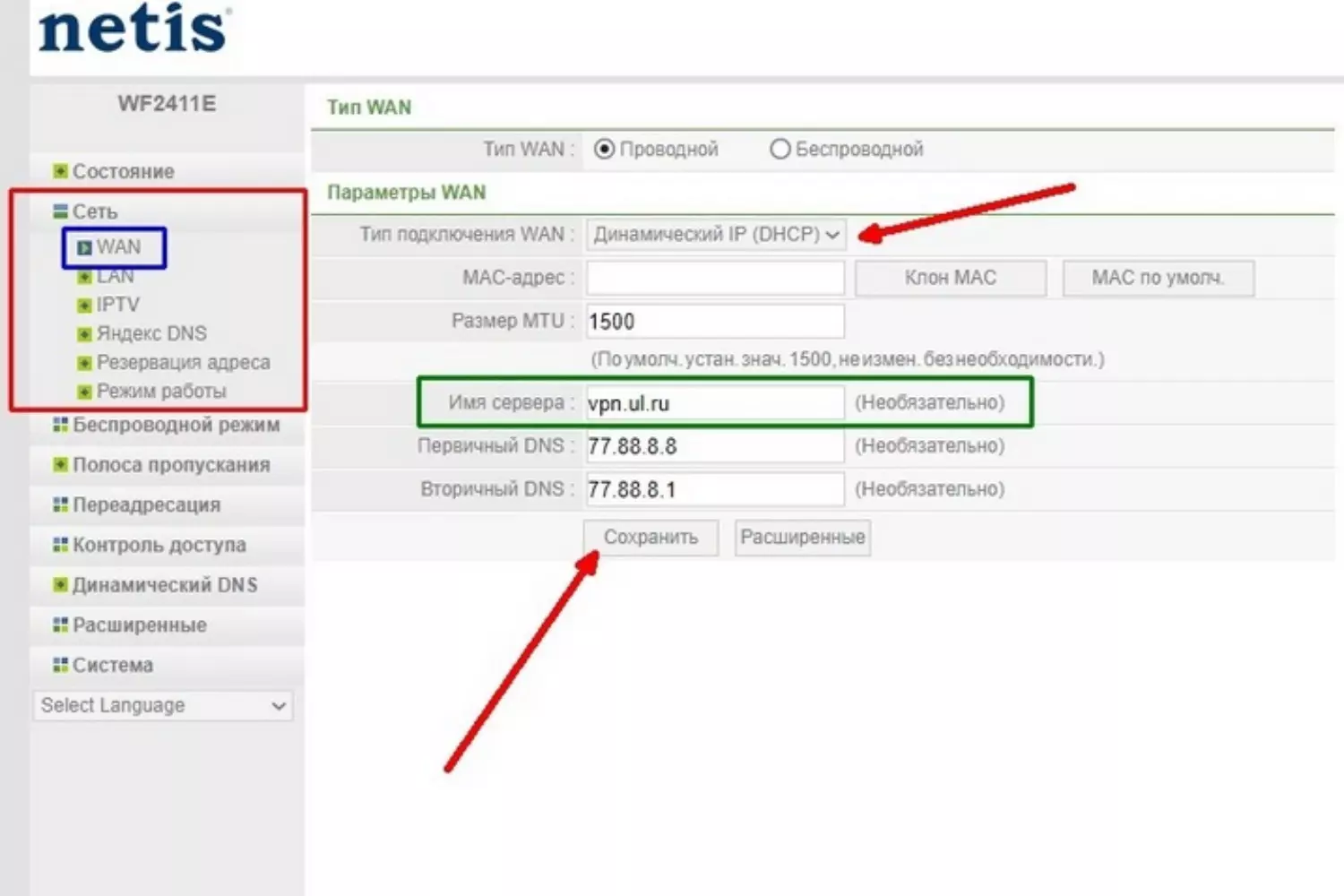• открыть вкладку «Сеть», а в ней найти раздел WAN;