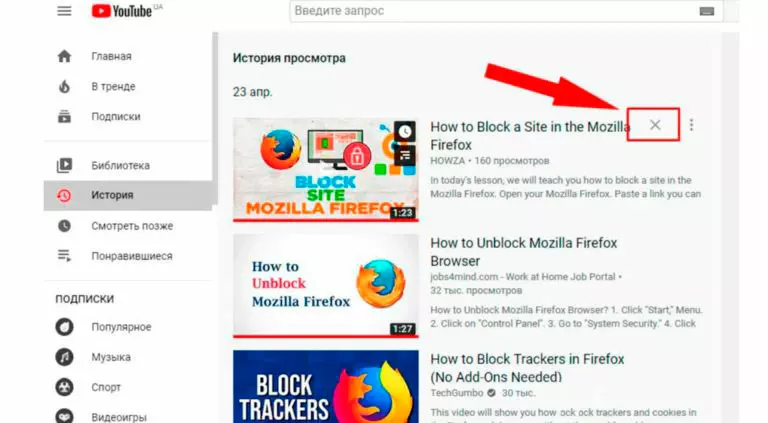 • нажмите расположенный справа от результата поиска крестик, чтобы это видео сразу же удалилось.