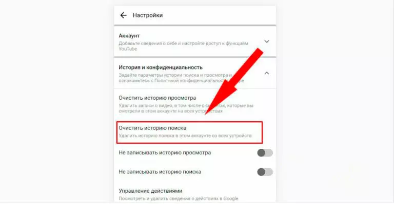 Удаление истории просмотра и поиска в YouTube на смартфоне