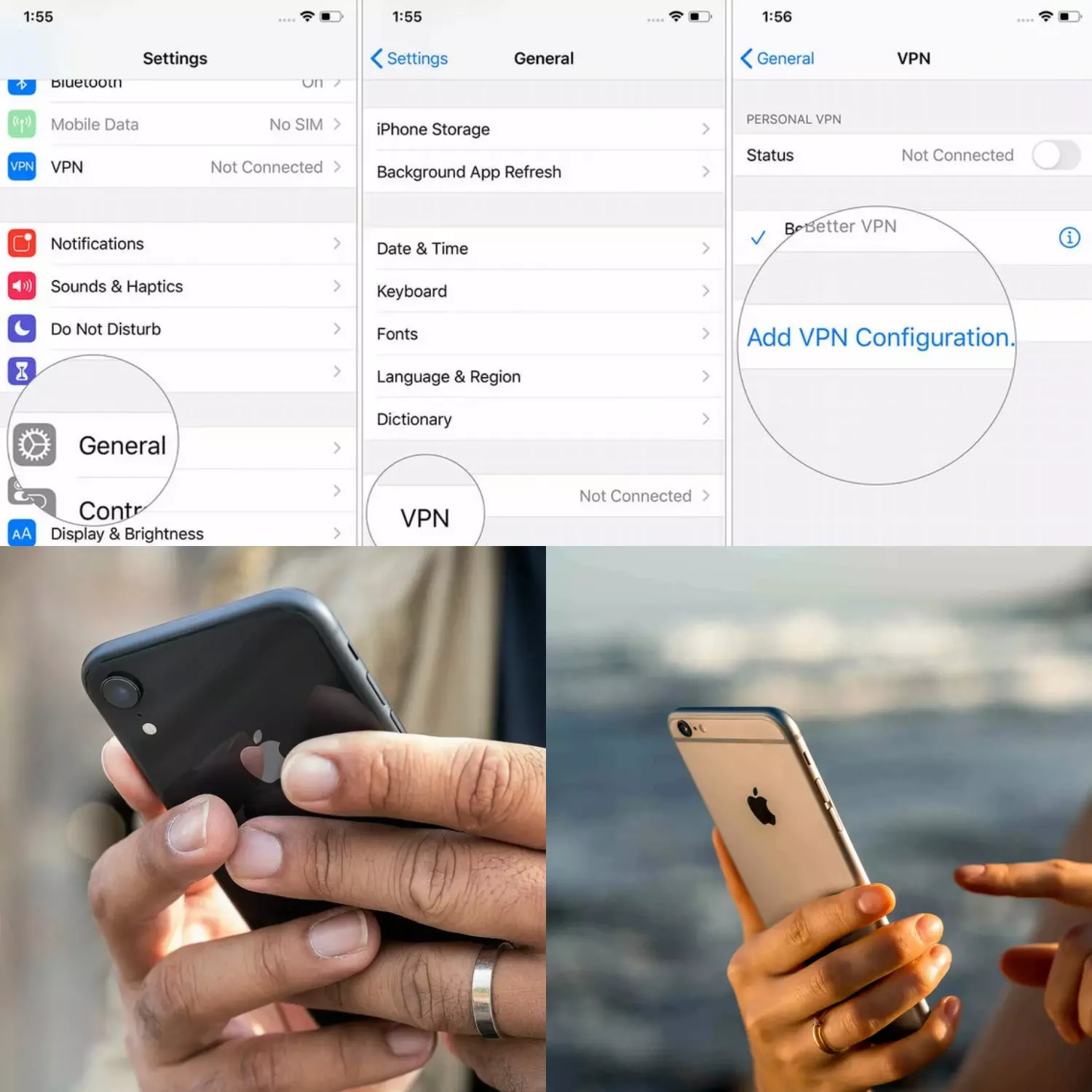 Рисунок 3. Визуальная инструкция по включению VPN на iPhone