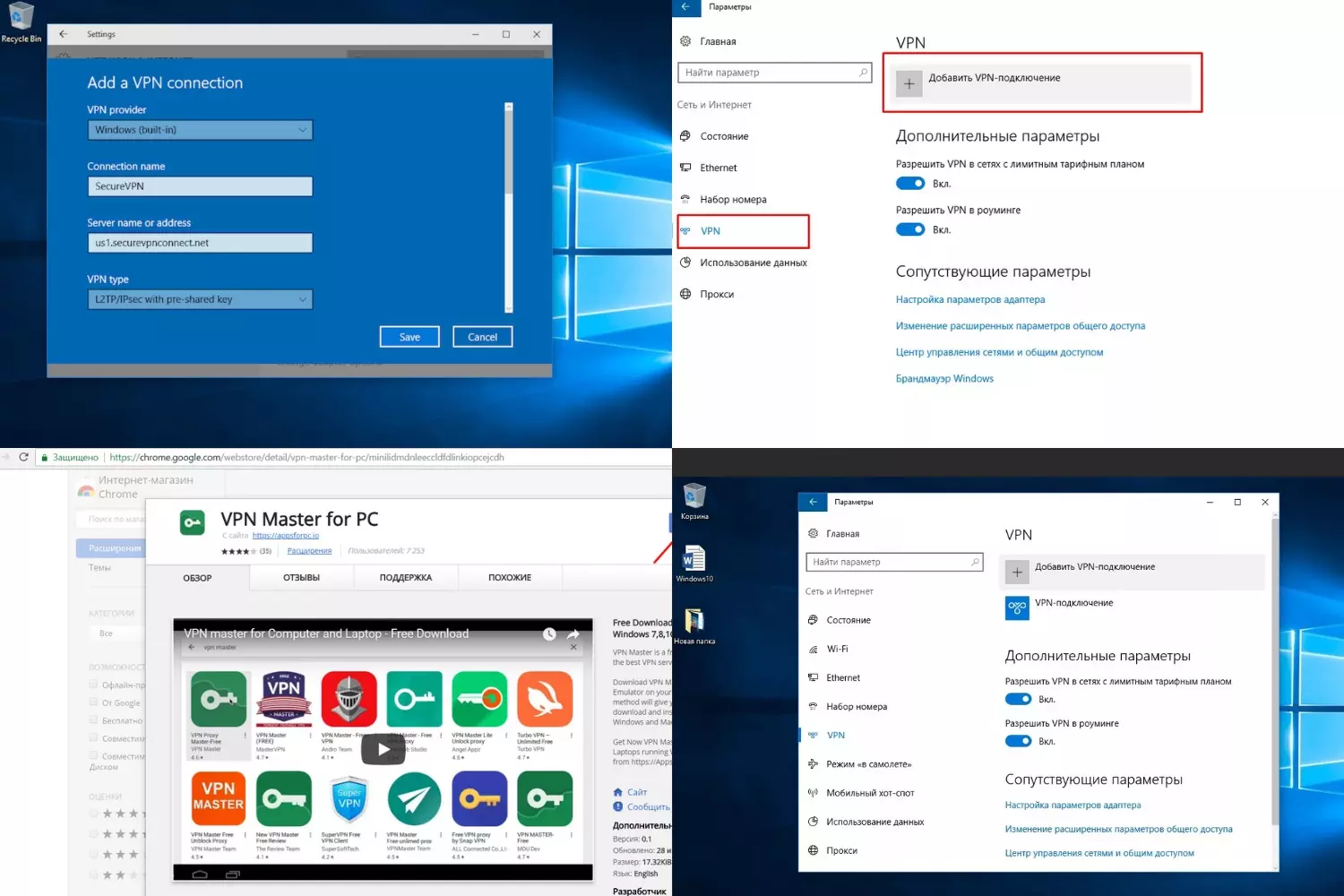 Рисунок 5. В ОС Windows предусмотрены все возможности для установки и подключения ВПН